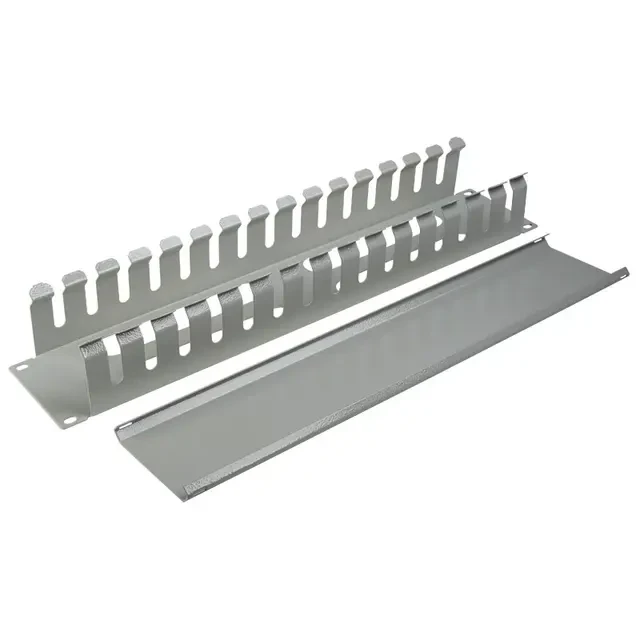 Кабельный горизонтальный органайзер 2U предназначен для удобного и компактного размещения коммутационных кабелей и шнуров. Рассчитан на установку в телекоммуникационные 19" шкафы и стойки напольного или настенного исполнения. Крышка обеспечивает дополнительное удержание коммутационных шнуров. Органайзер изготовлен из цельнометаллической панели. Имеет порошково-полимерное покрытие серого цвета.