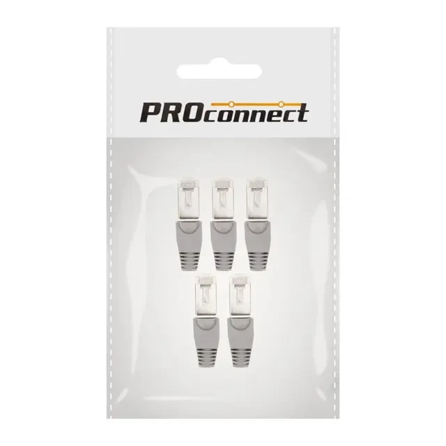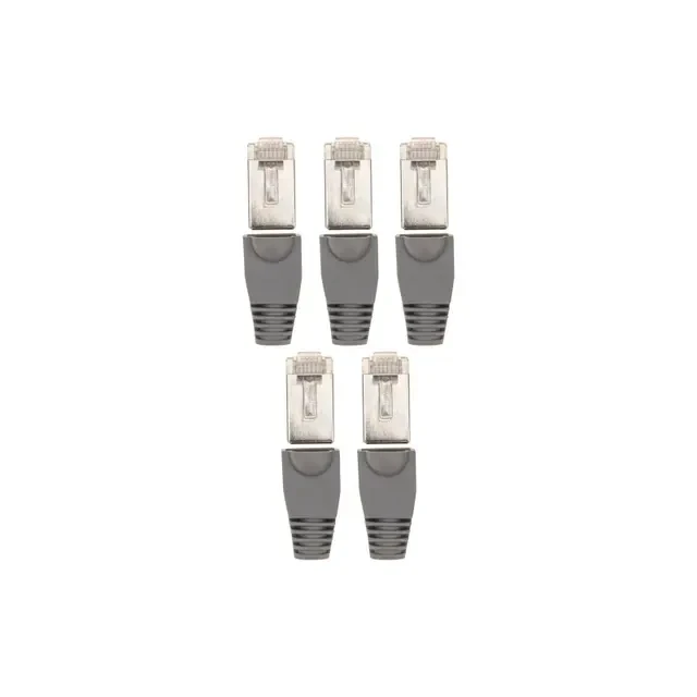 Набор сетевых разъемов №2 PROconnect предназначен для оконцевания кабелей. В наборе 5 сетевых разъемов FTP и 5 изолирующих колпачков. Разъемы выполнены из прозрачного качественного пластика, благодаря чему обеспечивают высокий уровень передачи данных и долгий срок службы. Каждый разъем имеет 8 посадочных мест и 8 ножей-контактов, которые покрыты слоем технического золота для повышения пропускной способности. Отличительной особенность – наличие экрана, который защищает сигнал от электромагнитных помех. Для опрессовки разъема на кабеле необходимо использовать специальный обжимной инструмент. Изолирующие колпачки предохраняют кабель от перегиба в месте соединения с разъемом, а также защищают защелку коннектора от повреждений, что значительно продлевает срок службы готового шнура. Изделия не увеличивают габариты разъема, что позволяет использовать их в информационных шкафах с высокой плотностью портов. Колпачки изготовлены из пожаростойкого и эластичного полипропилена, который обладает высоким уровнем надежности.