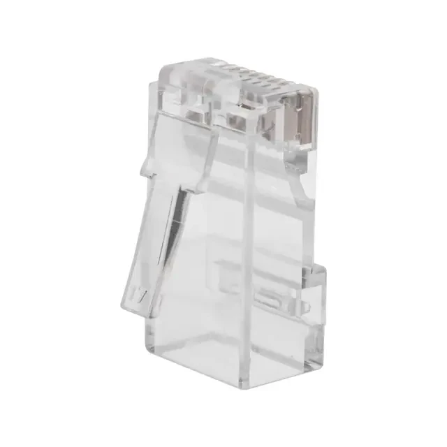 Разъем RJ-45 (8P8C) UTP категории 6 применяется для построения компьютерных сетей. Размещается на конце компьютерных кабелей и соединяет их с розеткой, хабом, свитчом, сервером, роутером или другим компьютером. Фиксация разъема на кабеле производится специальным обжимным инструментом. Устройство оснащено вставкой, которая облегчает распиновку жил в разъеме. Такая вставка необходима при использовании кабеля с многопроволочными жилами. Разъем изготовлен из прозрачного качественного пластика, имеет 8 посадочных мест и 8 ножей-контактов, которые покрыты слоем технического золота для повышения пропускной способности разъема. При изготовлении продукции использованы надежные материалы, обеспечивающие высокий уровень передачи данных и долгий срок службы. Разъемы серии RJ представленные нашей компанией соответствуют международным стандартам IEEE и обеспечивают функцию (PoE). PoE - технология передачи электрической энергии вместе с данными. Согласно стандартам IEEE 802.3af-2003 и IEEE 802.3at-2009 все разъемы серии RJ рассчитаны на номинальное напряжение 48 В постоянного тока ( макс = 57 В ) с максимальным током до 600 мА.