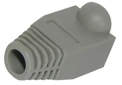 Колпачок RJ-45 серого цвета предназначен для дополнительной защиты места соединения разъема RJ-45 (8P8C) и информационного кабеля при построении телефонных и компьютерных сетей. Чаще всего применяется с витой парой диаметром до 6 мм. Защитный колпачок оберегает кабель от перегиба в месте соединения с разъемом, а также защищает защелку коннектора от повреждений, что значительно увеличивает срок службы готового шнура. Колпачок изготовлен из пожаростойкого и эластичного полипропилена, который обладает высоким уровнем надежности. Изделие не увеличивает габариты разъема, что позволяет использовать его в информационных шкафах с высокой плотностью портов. Использование цветных колпачков допускает возможность выделения определенных проводов, т.е. служит маркером кабеля.