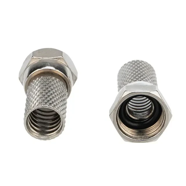 F-разъем для SAT PROconnect используется для соединения коаксиального кабеля волновым сопротивлением 75 Ом с телевизионным и видеооборудованием, таким как ресиверы, телевизоры, видеоаппаратура и т.д. Подходит для кабелей: SAT-50, SAT-703, DG-113, имеющих наружный диаметр 6,8 мм. Материал изготовления – из никелированного цинка. Для установки разъема необходимо накрутить его на кабель, предварительно зачистив контакты. Монтаж осуществляется быстро, так как не требует пайки контактов и использования специальных инструментов. Изделие оснащено резиновым уплотнителем, который обеспечивает защиту соединения от попадания влаги. Разъем не имеет непосредственного штекера, поэтому данную роль выполняет центральная жила кабеля, что позволяет избежать дополнительных потерь сигнала.
