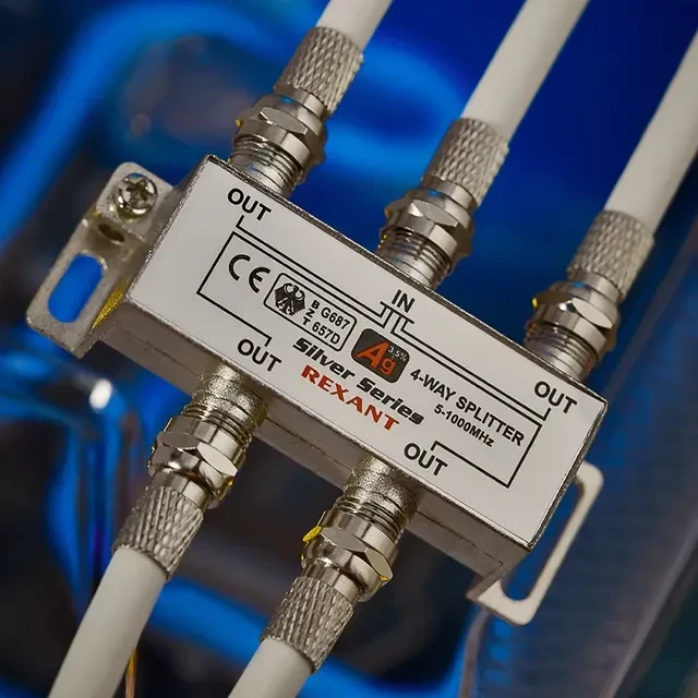 Телевизионный делитель или сплиттер предназначен для телевизионных систем и используется в домах и квартирах, где требуется подключить несколько телевизоров к одной антенне. Сплиттер распределяет поступающий на вход сигнал поровну на его выходы, что обеспечивает одинаково четкое изображение на всех подключенных устройствах. Устройство оснащено четырьмя выходами для сигнала и подключается с помощью стандартных F-разъемов. В комплекте поставляется 5 F-разъемов. Пайка внутри делителя осуществляется с использованием серебросодержащего припоя, что позволяет получить сигнал высокого качества и увеличить надежность. Делитель имеет надежный металлический корпус. Данный делитель подходит для сигналов с частотой 5-1000 МГц, что соответствует стандартному эфирному телевидению.