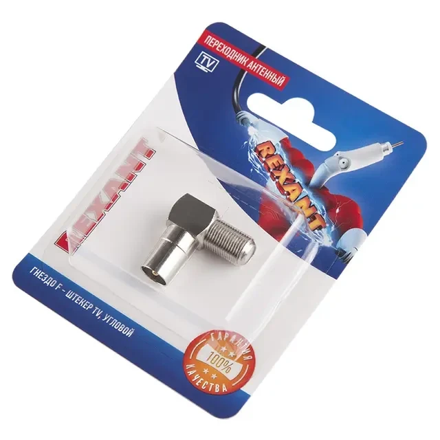 Переходник гнездо F – гнездо TV REXANT предназначен для подключения эфирного, спутникового и кабельного телевидения с помощью радиочастотного кабеля (50 или 75 Ом). Подходит для кабелей типа RG-6 и других коаксиальных кабелей (SAT-50, SAT-703, DG-113), имеющих наружный диаметр около 6,8 мм. Переходник оснащен разъемами: гнездо F – гнездо TV. Отличительной особенностью переходника является угловая форма, которая позволяет подсоединять провода в ограниченном пространстве, исключая сильные перегибы. В процессе установки сторона с гнездом F накручивается на кабель, оконцованный F-разъемом, а сторона с гнездом TV стыкуется с оборудованием. Материал изготовления – никелированный сплав первичной меди (биметалл), который обеспечивает долговечность соединения и минимальный уровень потери качества сигнала. Предварительно необходимо зачистить контакты. Монтаж не требует использования специальных инструментов: может производиться в удаленных местах, таких как крыши домов или комплексов.