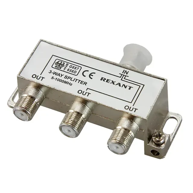 Антенный делитель F-типа на 3 TV REXANT предназначен для телевизионных систем. Используется для подключения нескольких телевизоров к одной антенне. Распределяет поступающий сигнал поровну на три выхода, что обеспечивает одинаково четкое изображение на всех подключенных устройствах. Подключается с помощью F-разъемов. Сплиттер обеспечивает надежное соединение контактов, что способствует качественному распределению сигнала без потери мощности. Не требует подключения к внешним устройствам. Полоса пропускания делителя от 5 до 1000МГц, что соответствует стандартному эфирному телевидению. При монтаже сплиттера нет необходимости паять контакты, что способствует удобному и быстрому подключению.