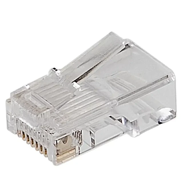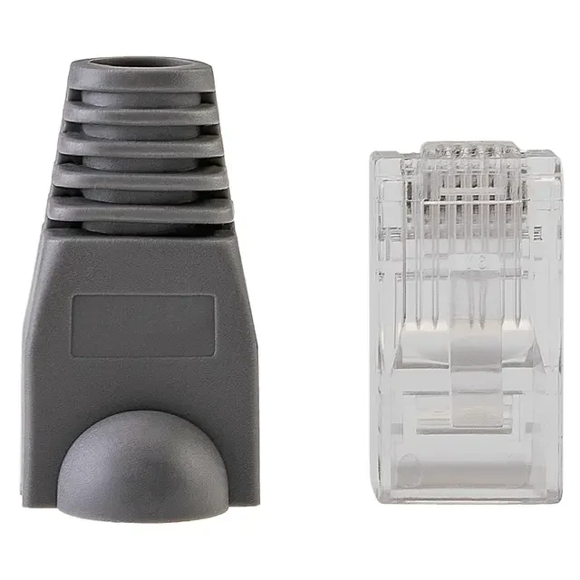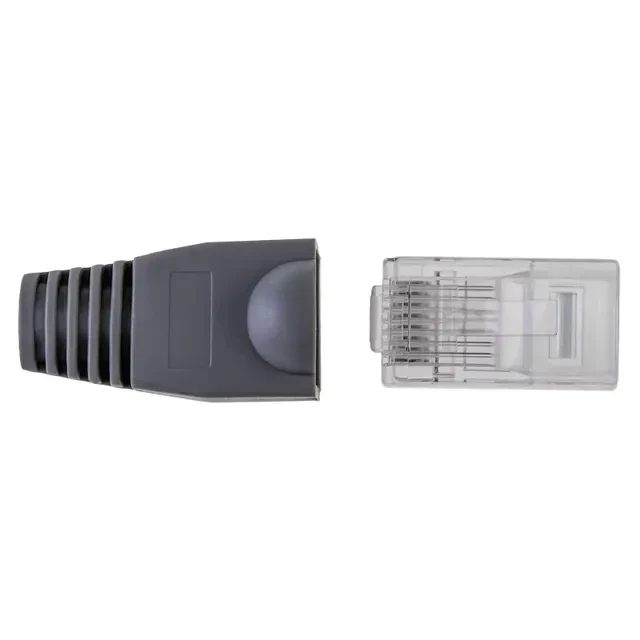 Набор сетевых разъемов №1 предназначен для оконцевания кабелей. В наборе 5 сетевых разъемов UTP и 5 изолирующих колпачков. Разъемы выполнены из прозрачного качественного пластика, благодаря чему обеспечивают высокий уровень передачи данных и долгий срок службы. Каждый разъем имеет 8 посадочных мест и 8 ножей-контактов, которые покрыты слоем технического золота для повышения пропускной способности. Для опрессовки разъема на кабеле необходимо использовать специальный обжимной инструмент. Изолирующие колпачки предохраняют кабель от перегиба в месте соединения с разъемом, а также защищают защелку коннектора от повреждений, что значительно продлевает срок службы готового шнура. Изделия не увеличивают габариты разъема, что позволяет использовать их в информационных шкафах с высокой плотностью портов. Колпачки изготовлены из пожаростойкого и эластичного полипропилена, который обладает высоким уровнем надежности.