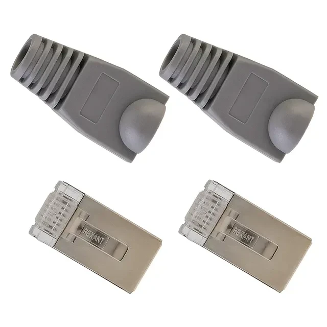 Набор сетевых разъемов №5 предназначен для оконцевания кабелей. В наборе 2 сетевых разъема FTP и 2 изолирующих колпачка. Разъемы выполнены из прозрачного качественного пластика, благодаря чему обеспечивают высокий уровень передачи данных и долгий срок службы. Каждый разъем имеет 8 посадочных мест и 8 ножей-контактов, которые покрыты слоем технического золота для повышения пропускной способности. Отличительной особенность – наличие экрана, который защищает сигнал от электромагнитных помех. Для опрессовки разъема на кабеле необходимо использовать специальный обжимной инструмент. Изолирующие колпачки предохраняют кабель от перегиба в месте соединения с разъемом, а также защищают защелку коннектора от повреждений, что значительно продлевает срок службы готового шнура. Изделия не увеличивают габариты разъема, что позволяет использовать их в информационных шкафах с высокой плотностью портов. Колпачки изготовлены из пожаростойкого и эластичного полипропилена, который обладает высоким уровнем надежности.