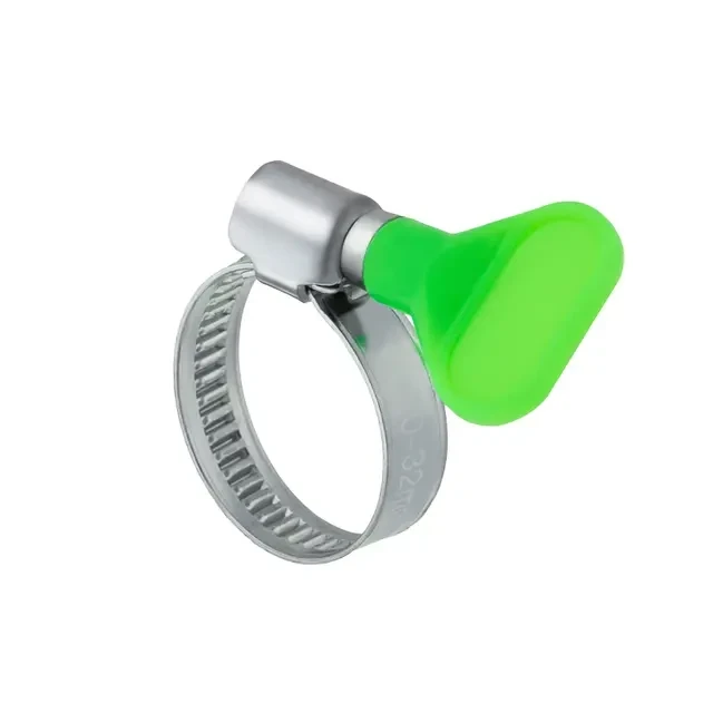 Хомут червячный с ключом — это соединительный элемент, применяемый для крепления и герметизации соединения шлангов, патрубков и других жёстких и гибких трубопроводов, ключ на данном хомуте позволяет обойтись без вспомогательного инструмента. Такой хомут несложно затянуть или раскрутить вручную, поэтому в быту этот крепеж находит применение обычно там, где его требуется часто снимать и ставить вновь. Область применения: предназначен для обжатия различных соединений в гидравлических и пневматических системах и должен обеспечивать герметичность соединений в условиях умеренного и тропического климата.