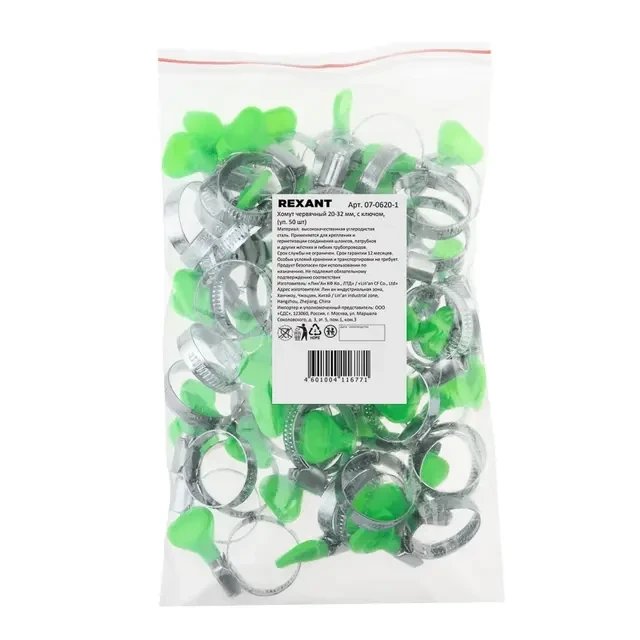 Описание REXANT 07-0620-1 - Купить Хомут червячный с ключом