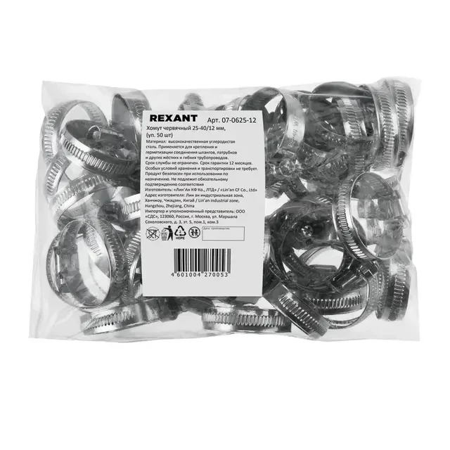 Описание REXANT 07-0625-12 - Купить Хомут червячный 25-40/12-0,8мм