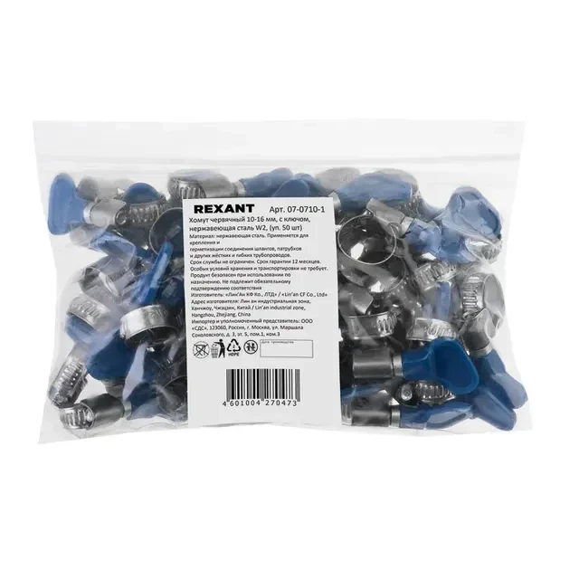 Описание REXANT 07-0710-1 - Купить Хомут червячный с ключом