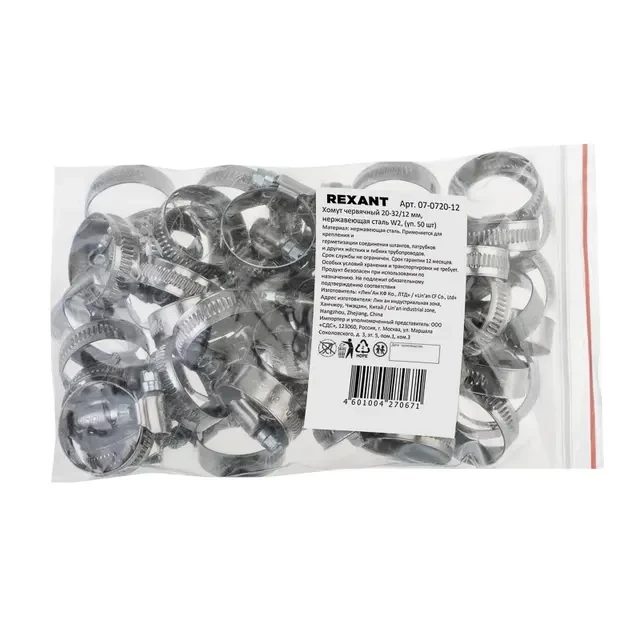 Описание REXANT 07-0720-12 - Купить Хомут червячный 20-32/12-0,8мм