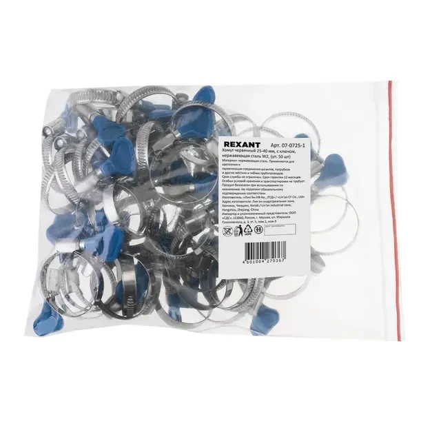 Описание REXANT 07-0725-1 - Купить Хомут червячный