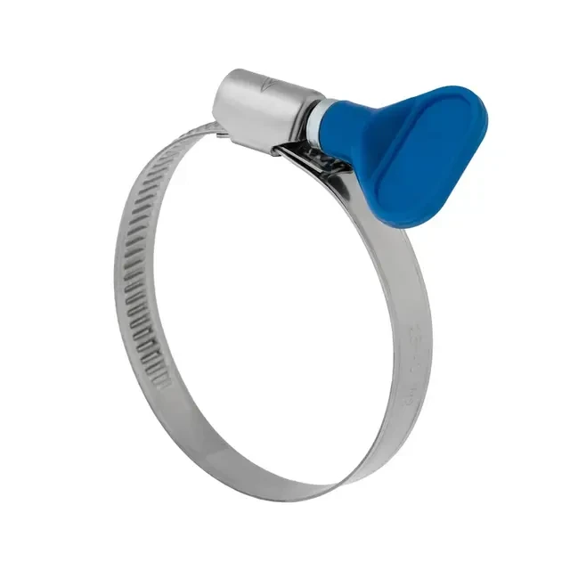 Хомут червячный с ключом из нержавеющей стали – это соединительный элемент, применяемый для крепления и герметизации соединения шлангов, патрубков и других жёстких и гибких трубопроводов. Используется для обжатия различных соединений в гидравлических и пневматических системах. Ключ на данном хомуте позволяет обойтись без вспомогательного инструмента. Такой хомут несложно затянуть или раскрутить вручную, поэтому в быту этот крепеж находит применение там, где его требуется часто снимать и ставить вновь.