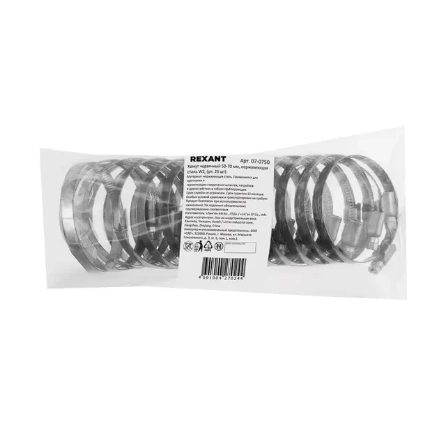 Описание REXANT 07-0750 - Купить Хомут червячный 50-70/9-0,6мм