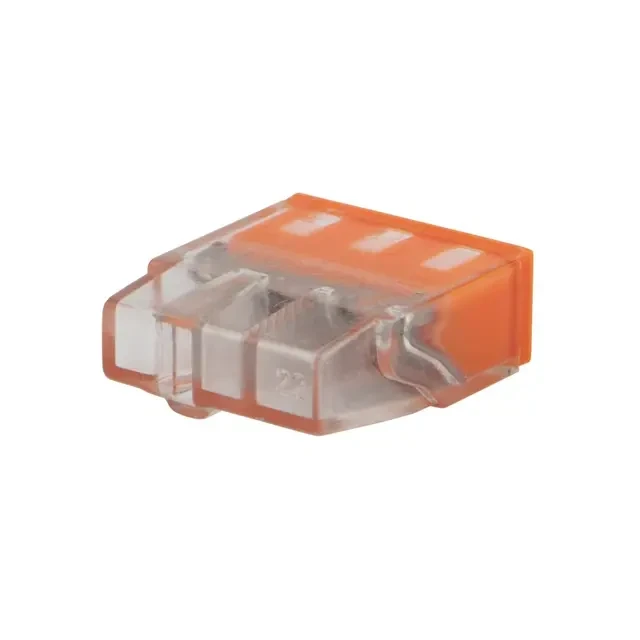 Строительно-монтажные экспресс-клеммы REXANT предназначены для подсоединения медных одножильных проводников. Они являются одним из самых быстрых, надежных и удобных способов монтажа проводников в условиях нехватки и ограничения площади. Обеспечивают экономию места до 50% по сравнению с простыми пружинными клеммами. Компактный прозрачный корпус удобен для контроля соединения, а яркая цветовая разметка способствует визуальному различию клемм по количеству проводников. Экспресс-клеммы одновременно подходят для медных и алюминиевых проводников. Прочный корпус из высококачественных материалов не поддерживает горение. Быстрый монтаж обеспечивается за счет пружинного способа соединения. Укомплектованы специальной контактной пастой, которая снимает окисную пленку с алюминиевых проводов и предохраняет их от повторного окисления. Технические характеристики: Материал корпуса: полиамид 66 Контакты: луженая медь Количество контактов: 3 Цвет: прозрачный Напряжение: 450 В Ток: 24 А Поддерживаемое сечение: 3x0,2-2,5 мм² (одножильный провод) Длина зачистки изоляции: 11 мм Рабочая температура: –40...+85 °С