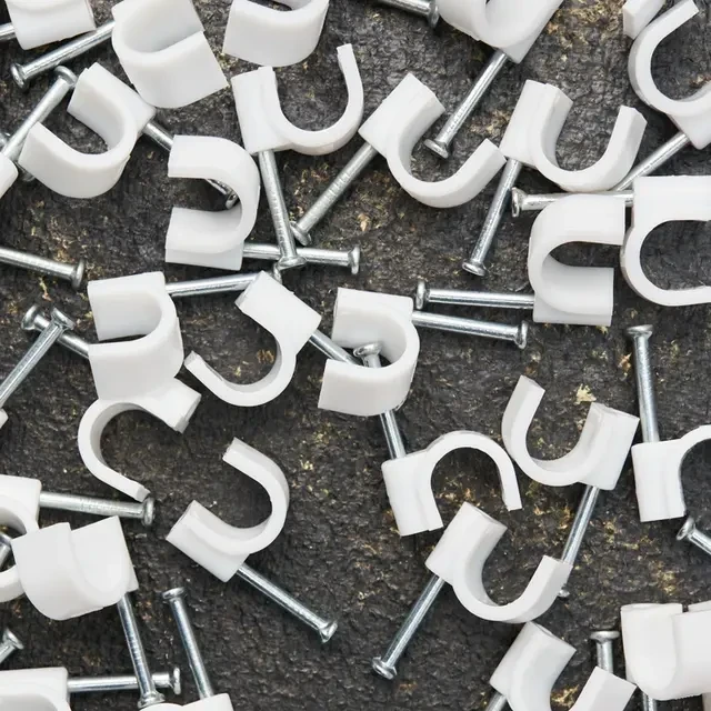 Круглый крепеж 9 мм с гвоздем предназначен для фиксации круглого кабеля к деревянной поверхности. Такой крепеж будет особенно полезен для использования на даче или в частном деревянном доме. Представляет собой дугообразную скобу белого цвета, выполненную из качественного пластика, с гвоздем в специальном отверстии. Скоба используется для мгновенного и надежного крепления проводов и кабелей к поверхностям стен, несущих конструкций и потолков. Гвоздь выполнен из закаленной стали, что позволяет закрепить его даже в плотной и твердой древесине без риска погнуть или сломать.