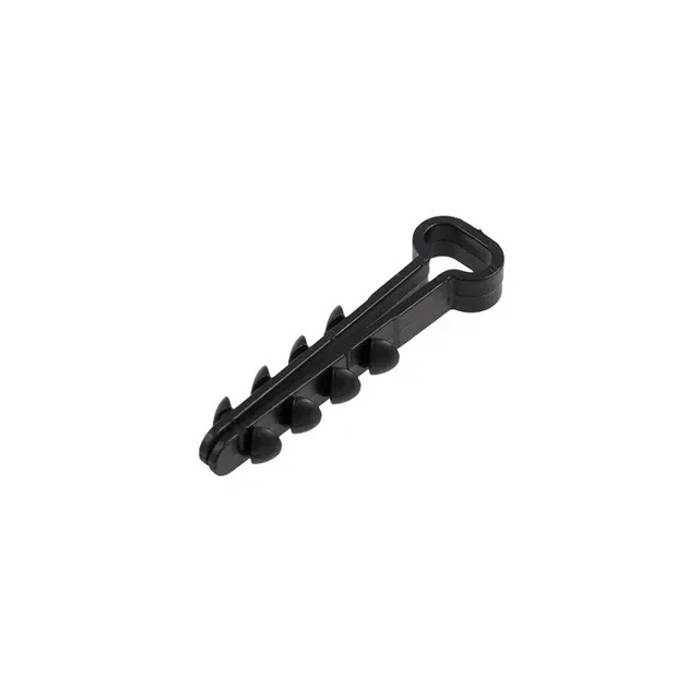 Прямоугольный дюбель-хомут 5-8 мм предназначен для крепления плоского кабеля к поверхности открытым или закрытым способом. Дюбель-хомут представляет собой крепежное изделие с петлей для удержания кабеля и уникальной системой боковых шипов типа «елочка». Благодаря шипам крепеж легко вставляется в отверстие и не выпадает, а для извлечения такого дюбеля понадобятся плоскогубцы. Важно: для надежной фиксации дюбеля необходимо соблюдать точные параметры при сверлении отверстия, а для этого желательно использовать новую оснастку, которая не успела износиться. Дюбель может быть установлен в бетон, кирпич, газобетон и природный камень. Морозостойкие добавки добавляют крепежу устойчивость к низким температурам и позволяют использовать его на улице или в неотапливаемых помещениях. В упаковке 100 дюбель-хомутов черного цвета.