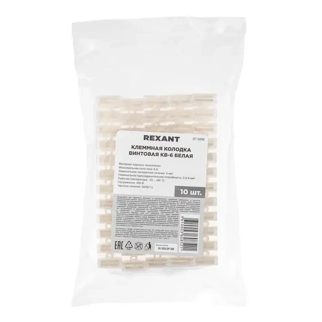Описание REXANT 07-5006 - Купить Клеммная колодка винтовая KВ-6