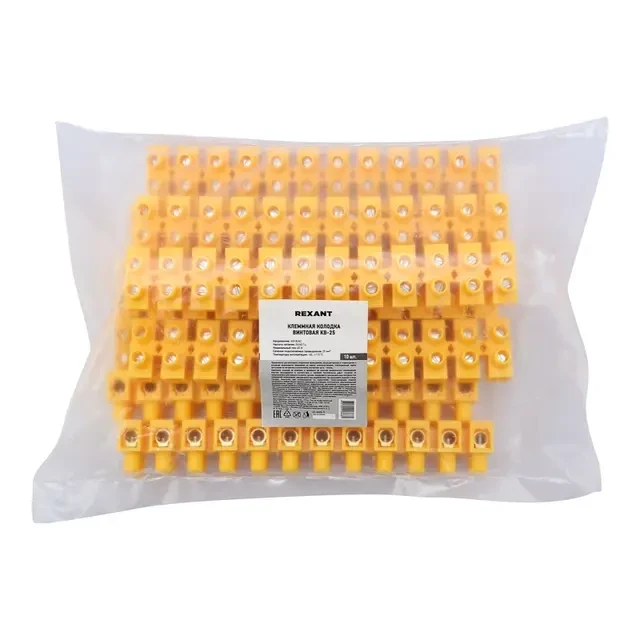 Клеммная винтовая колодка KВ-25 10-25, ток 60 A, полипропилен желтый REXANT (10 шт./уп.)