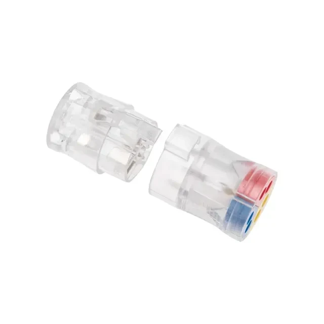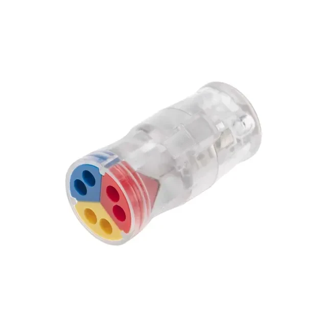 Строительно-монтажные экспресс-клеммы REXANT с разъемным соединением предназначены для соединения медных одножильных проводников. Они являются одним из самых быстрых, надежных и удобных способов монтажа проводников в условиях нехватки и ограничения пространства. Обеспечивают экономию места до 50% по сравнению с простыми пружинными клеммами. Прочный корпус из высококачественных материалов не поддерживает горение. Быстрый монтаж обеспечивается за счет пружинного способа соединения. ВНИМАНИЕ: запрещается удерживать грузы на клеммах, подвешивать на клемме различные грузы и предметы (светильники). Технические характеристики: Материал корпуса: поликарбонат Контакты: луженая медь Количество полюсов: 3 Количество проводов: 3х2 Цвет: прозрачный Напряжение: 450 В Ток: 24 А Поддерживаемое сечение: 12x0,5-2,5 мм² (одножильный провод) Длина зачистки изоляции: 12 мм Рабочая температура: –40...+85 °С