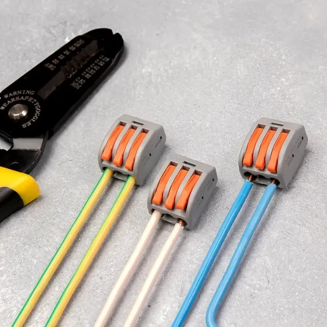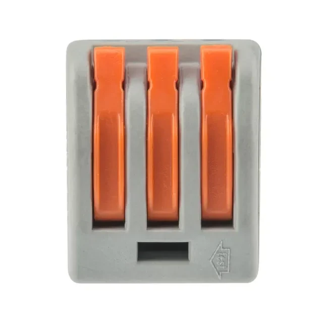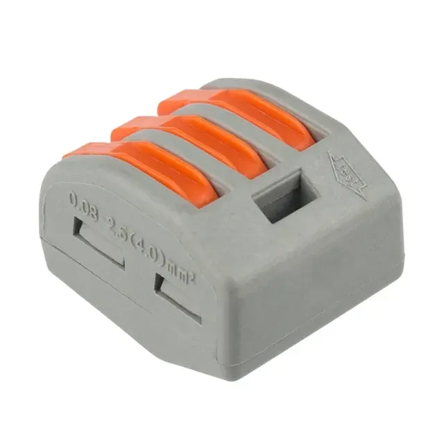Соединительная многоразовая клемма REXANT с плоско-пружинным зажимом предназначена для соединения медных одножильных и многожильных зачищенных проводников тонкого сечения. Перед монтажом с соединяемым проводником необходимо снять изоляцию в соответствии с обозначениями на корпусе клеммы. Зачищенный участок с монтажной стороны не должен иметь сильных изгибов. Проводник вводится в свободное гнездо клеммы с предварительно поднятым оранжевым рычажком, после чего рычаг опускается в исходное положение. Контакт осуществляется путем зажима проводника пластиной. Конструкция предотвращает случайное размыкание контакта. Специальное технологическое отверстие на корпусе клеммы предназначено для проверки соединения тестером-пробником или щупом мультиметра. Корпус из пластика делает контакт изолированным. Извлечение проводника (демонтаж) осуществляется перечисленными действиями в обратном порядке. Характеристики: Размер: 17x14.5x20.5 мм Материал: полиамид Количество контактов: 3 Материал контактов: луженая медь Зажим: сталь Цвет: серый Напряжение: 400 В Материал подключаемых проводов: Cu (медь) Типы подключаемых проводов: одножильные, многожильные Ток для одножильных проводов: 32 А Ток для многожильных проводов: 24 А Классификация по AWG: 28-12 Поддерживаемое сечение для одножильного провода: 3x0.08-4 мм² Поддерживаемое сечение для многожильного провода: 3x0.08-2.5 мм² Рабочая температура: -40...+85 ºC Количество в упаковке: 50 шт. Преимущества: Простой и быстрый монтаж/демонтаж соединения Безопасное подключение без использования специальных инструментов Компактные размеры Удобная форма Наличие гнезда для проверки соединения
