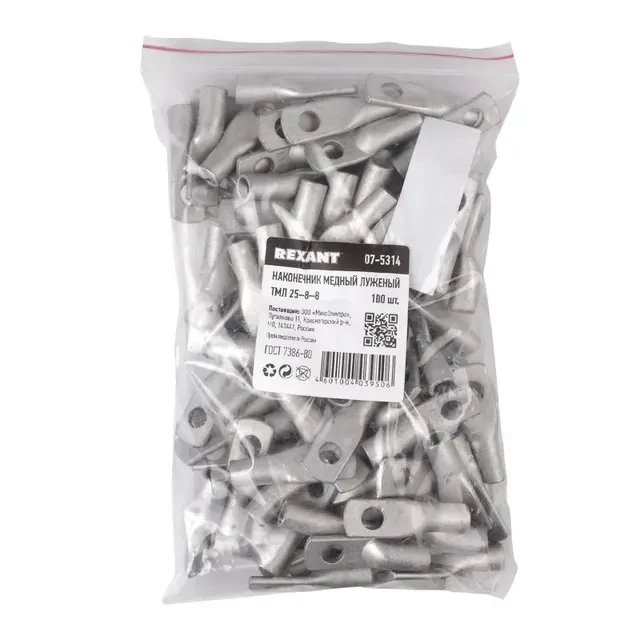 Описание REXANT 07-5314 - Купить Наконечник медный луженый ТМЛ 25–8–8