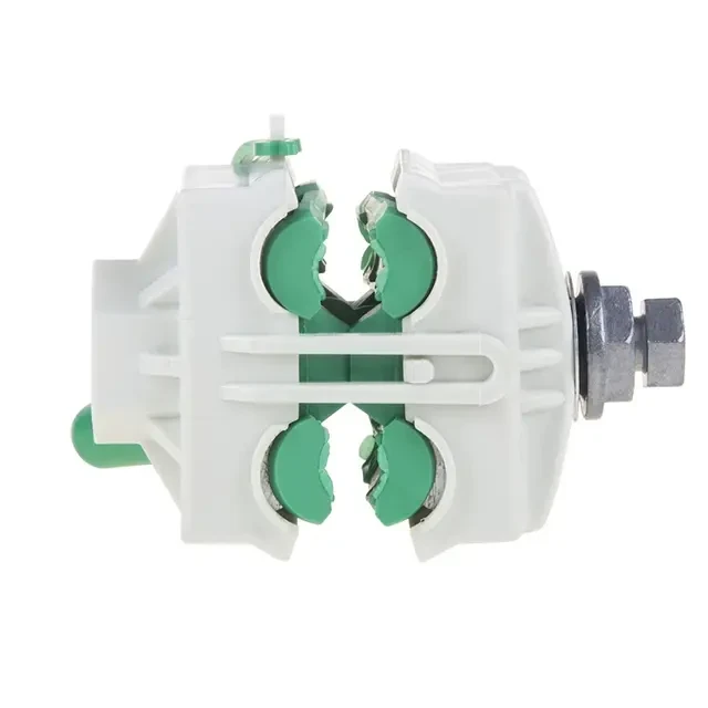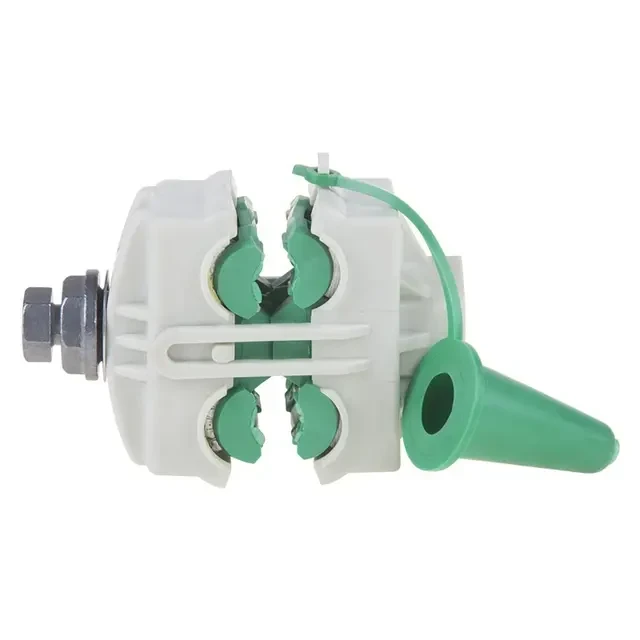 Применяется для соединения неизолированных алюминиевых проводов с СИП. Срывная металлическая головка из алюминиевого сплава. Нижняя планка для фиксации зажима при затяжке болта. Корпус зажима сделан из армированного композиционного диэлектрического пластика, устойчивого к ультрафиолетовому излучению. Герметичность обеспечена специальным атмосферо- и ультрафиолетостойким эластомером. Не требуется специальных ключей. Допускается монтаж при температуре окружающего воздуха до –25 °С. Изоляция испытана напряжением 6 кВ. Сечение жилы, мм²: - Магистраль 16-150 мм² - Ответвления 16-150 мм² Срывная головка: - Усилие затяжки 16 Нм - Размер головки 13 мм