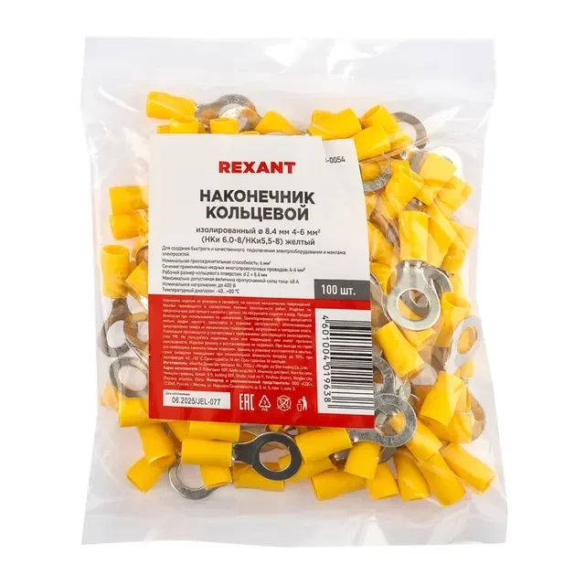 Наконечник кольцевой изолированный ? 8.4 мм 4-6 мм? (НКи 6.0-8/НКи5,5-8) желтый REXANT