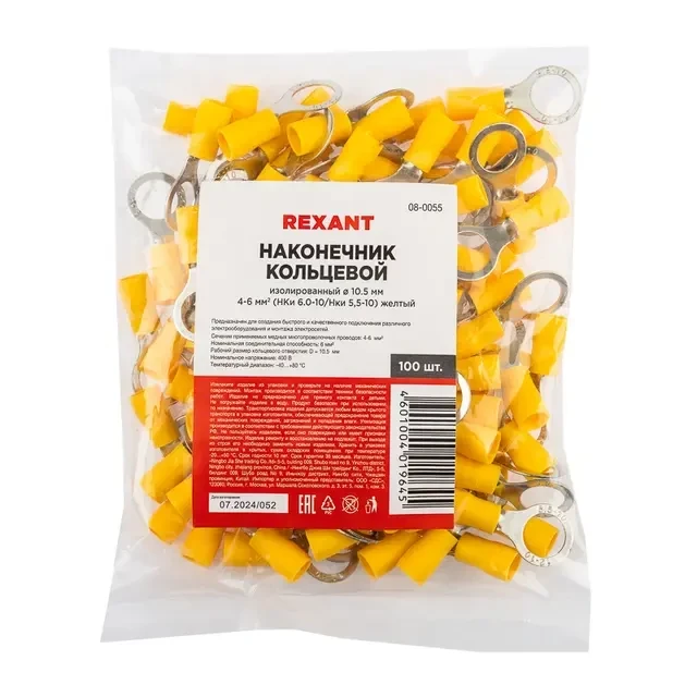 Наконечник кольцевой изолированный ? 10.5 мм 4-6 мм? (НКи 6.0-10/НКи5,5-10) желтый REXANT