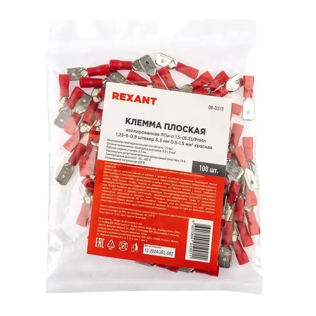 Клемма плоская изолированная РПи-п 1.5-(6.3)/РпИп 1,25-6-0,8 штекер 6.3 мм 0.5-1.5 мм? красная REXANT