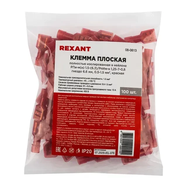 Отзывы о REXANT 08-0613 - Купить Клемма плоская полностью изолированная в нейлоне