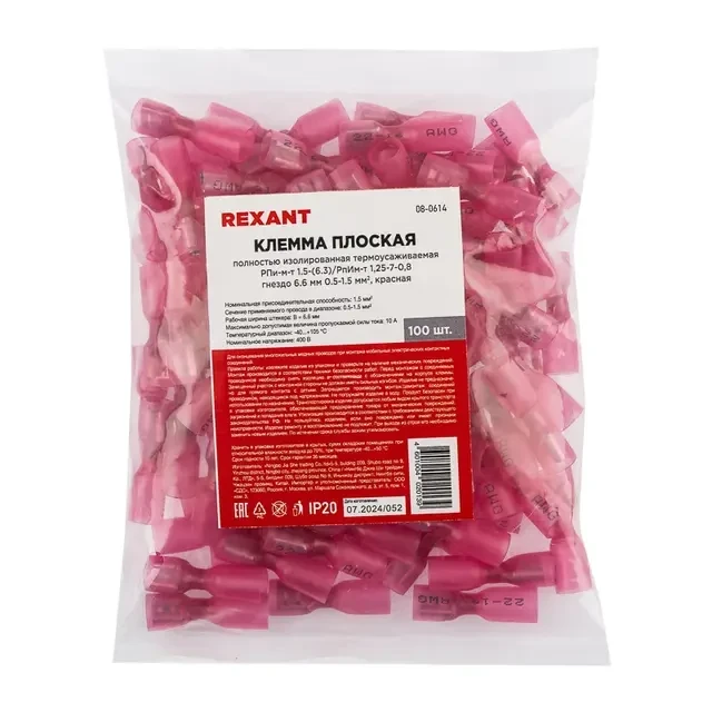 Описание REXANT 08-0614 - Купить Клемма плоская полностью изолированная термоусаживаемая