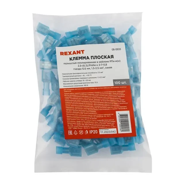 Отзывы о REXANT 08-0633 - Купить Клемма плоская полностью изолированная в нейлоне