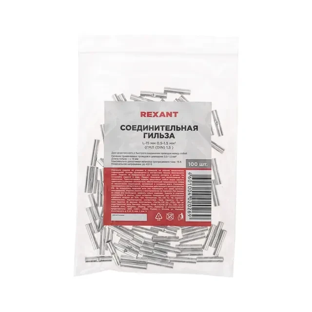Соединительная гильза L-15мм, 0,5-1,5мм? (ГМЛ (DIN) 1,5) REXANT