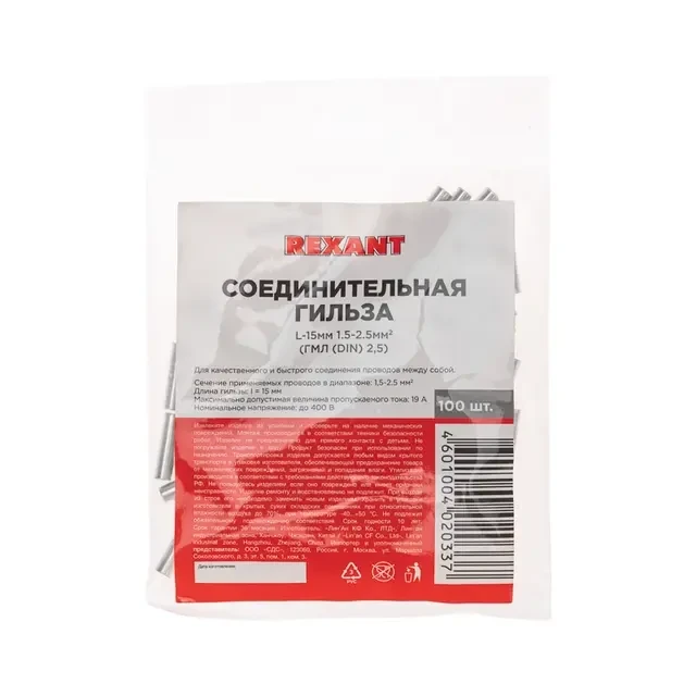 Соединительная гильза L-15мм, 1,5-2,5мм? (ГМЛ (DIN) 2,5) REXANT