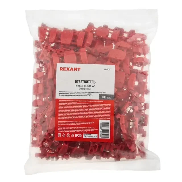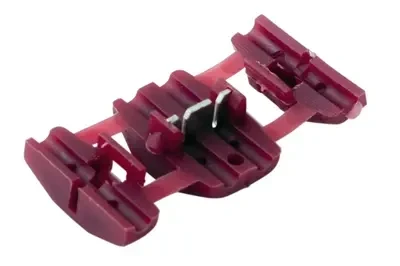 Ответвитель 0.5-0.75 мм² красный REXANT предназначен для ответвления электроэнергии от токонесущего провода с последующей подачей питания на дополнительное электрооборудование. Такой, применяемый в электрике и радиоэлектронике, ответвитель "книжка" представляет собой пластиковый корпус, внутри которого расположен контактный нож. Технические характеристики: - корпус ответвителя изготовлен из поливинилхлорида (ПВХ); - врезные контакты изготовлены из латуни с электролитическим защитным покрытием; - сечение применяемых проводов в диапазоне 0.5-0.75 мм²; - Материал контактов: луженая латунь; - Цвет: темно-красный; - Максимально допустимый: 18 А/400В. Монтаж осуществляется в считанные секунды: прокладываем провода в корпус (без предварительной зачистки); небольшим усилием на крышку, в ходе которого контактный нож прорезает изоляцию вложенных проводов, защелкиваем ее. После защелкивания соединение готово к эксплуатации.
