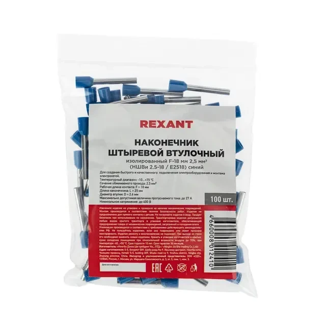 Наконечник штыревой втулочный изолированный F-18 мм 2.5 мм? (НШВи 2.5-18) синий REXANT