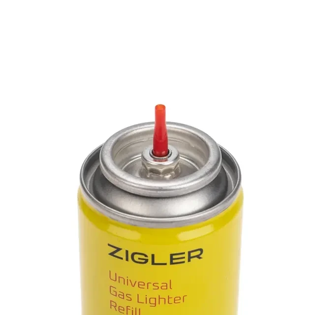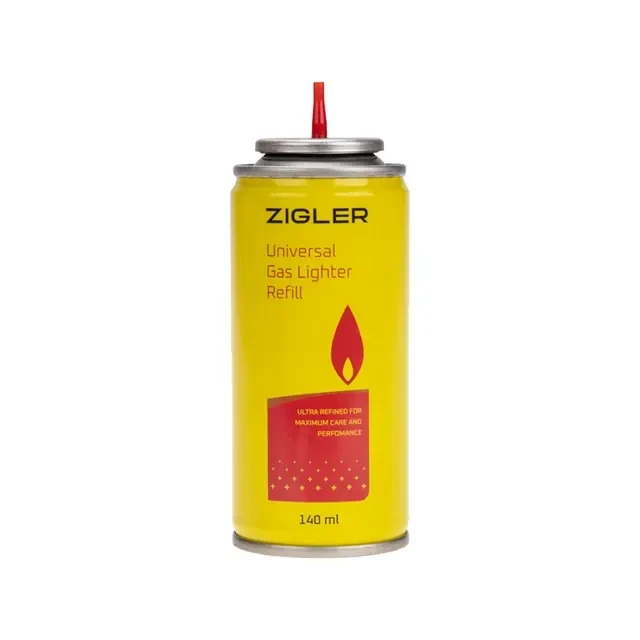 Газ в металлическом баллоне предназначен для заправки различных моделей зажигалок и других портативных газовых приборов, таких как обогреватели, светильники, паяльные лампы, газовые плиты и т.п. В баллоне объемом 140 мл (55 гр) содержится газ, состоящий из пропана, бутана и очищенного изобутана. Смесь не содержит примесей и несгораемых частиц, что обеспечивает беспрепятственное прохождение газа, защищая газовые устройства от поломки. Содержимое баллончика не имеет посторонних запахов. В комплектацию входят 5 сменных насадок, которые хранятся в защитном колпачке и подходят для заправки разных видов портативных газовых устройств. Перед заправкой зажигалки или другого портативного газового прибора следует снять с баллона колпачок и выбрать подходящую насадку, затем необходимо перевернуть баллон заправочной головкой вниз и вставить сопло в отверстие для заправки. Наполняя газовое устройство, нужно несколько раз нажать на баллон вертикально вниз.