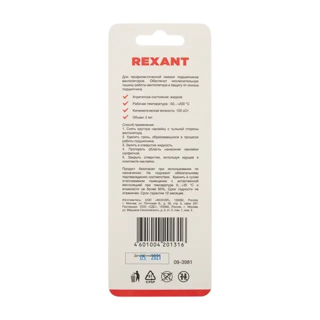 Описание REXANT 09-3981 - Купить Смазка для кулеров (вентиляторов) SX-1