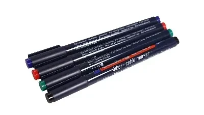 Набор маркеров Edding -8407 4S предназначен для нанесения маркировки кабеля. Маркеры обладают тонкими круглыми (пулевидными) металлическими наконечниками, позволяющими наносить мелкие буквы, символы, обозначения на кабели и провода различных видов. Форма наконечника исключает царапины и повреждения поверхности. Лаковые чернила содержат высокую концентрацию пигмента. После высыхания устойчивы к механическому истиранию, воздействию атмосферных осадков, смазочных материалов, солнечных лучей, песка, пыли, вибрации, не крошатся, не отслаиваются от поверхности. Корпус маркеров изготовлен из ударопрочного ABS-пластика. Изделия хранятся в горизонтальном положении.