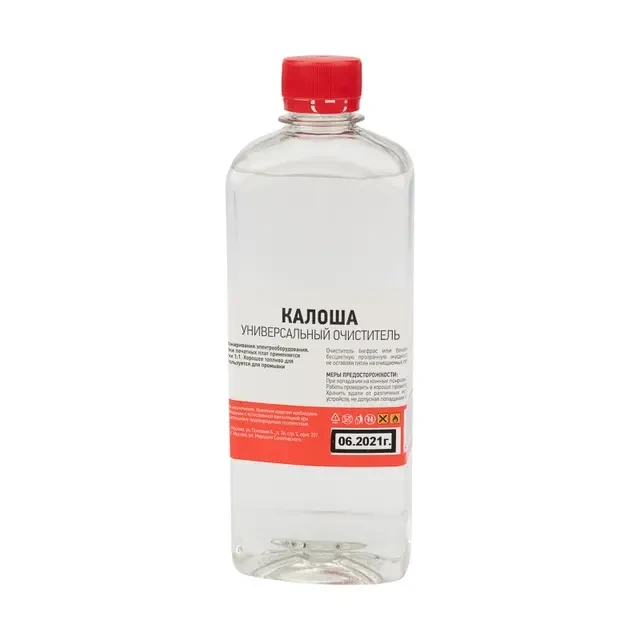 Универсальный растворитель-очиститель КАЛОША 500 мл REXANT предназначен для обезжиривания поверхностей, заправки зажигалок, разбавления красок, очистки различных механизмов от загрязнений, промывки печатных плат, изготовления быстросохнущих масляных лаков и красок, а также других всевозможных целей. Широко применяется в качестве жидкого топлива в зажигалках, паяльных лампах, бензовоздушных горелках, а также в производстве резиновых изделий. Очиститель (нефрас или бензин-калоша) представляет собой бесцветную прозрачную жидкость, которая быстро испаряется, не оставляя пятен на очищаемых поверхностях. Популярность этого вещества в качестве растворителя объясняется довольно сильными растворяющими способностями. Нефрас оказывает малое негативное воздействие на человеческий организм, по сравнению со многими другими видами растворителей. Меры предосторожности: При попадании на кожные покровы промыть теплой водой с мылом. Работы проводить в хорошо проветриваемом помещении. Хранить вдали от различных источников тепла и электрических устройств, не допуская попадания прямых солнечных лучей.
