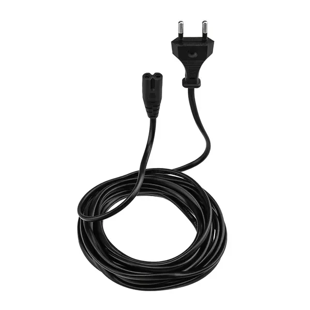 Шнур сетевой СЕЕ 7/16 - разъем IEC 320 C7 5 м 2х0.5 мм² REXANT предназначен для подключения к сети переменного тока (AC) с напряжением 220 B аудио- и видеоаппаратуры, источников питания ноутбуков, игровых консолей и других приборов, имеющих штыревой сетевой разъем типа С8 (известен из-за его формы как «восьмерка»). Данный сетевой шнур (IEC cord) состоит из двухжильного провода с сечением проводника 0.5 мм², с одной стороны литой неразборной вилкой СЕЕ 7/16 и с другой — литым гнездовым неполяризованным разъемом типа IEC 320 C7. Основные характеристики: Тип вилки: СЕЕ 7/16 Тип разъема: IEC 320 C7 Максимальная сила тока: 3 А Изоляция жил и общая оболочка изготовлена из ПВХ Длина провода: 5 м Шнур имеет многопроволочные жилы, заключенные в эластичную двойную изоляцию из ПВХ, что делает его максимально гибким и увеличивает срок эксплуатации изделия.