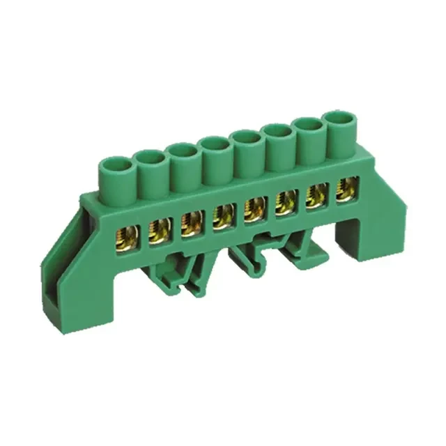 Шина PE «земля» в комбинированном зеленом изоляторе на DIN-рейку 6x9мм 8 групп REXANT