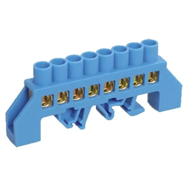 Шина «N» нулевая в комбинированном синем изоляторе на DIN-рейку 8x12мм 8 групп REXANT