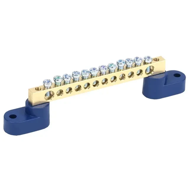 Шина «N» нулевая 6х9мм на двух угловых синих изоляторах 12 групп REXANT