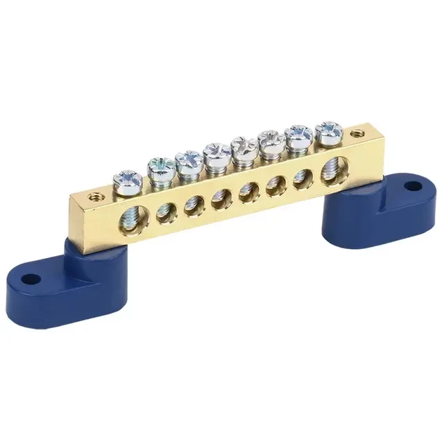 Шина «N» нулевая 8х12мм на двух угловых синих изоляторах 8 групп REXANT