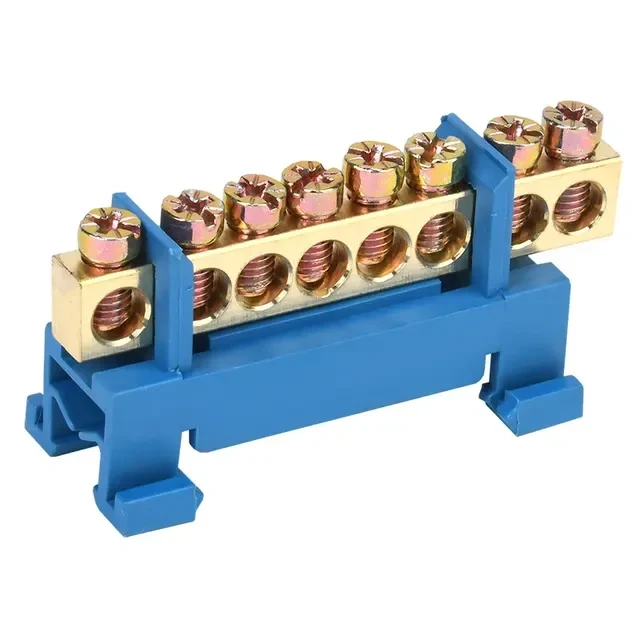 Нулевая шина REXANT предназначена для электрического и механического соединения нулевых, защитных и фазных проводников. Материал изготовления – высококачественная латунь, что гарантирует надежное электрическое соединение и высокую стойкость к коррозии. Шина установлена на синий изолятор, выполненный из пластика. Среднее значение относительной влажности при эксплуатации не должно превышать более 90%.