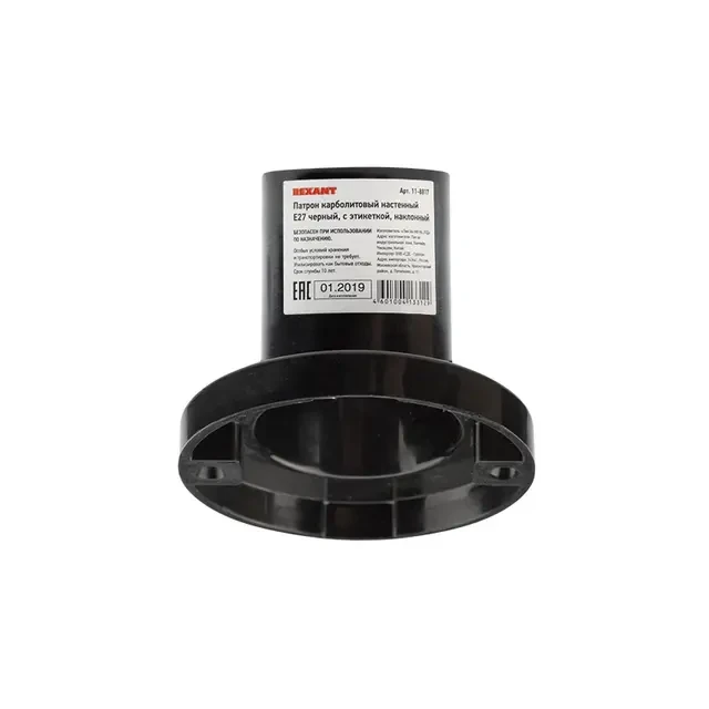 Патрон карболитовый настенный Е27 черный, c этикеткой, наклонный REXANT