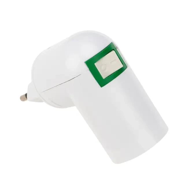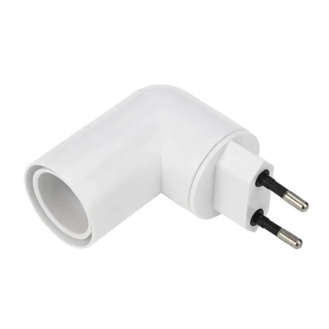 Цокольный переходник 220 В – E14 предназначен для подключения лампочки с цоколем E14 к сети переменного тока 220 В. Используется для создания дополнительного источника света в местах, где есть розетка. Корпус переходника изготовлен из термостойкого пластика PBT, который выдерживает высокие температуры отличается хорошими изоляционными свойствами, ударопрочностью и химической стойкостью, что делает использование патрона безопасным и надежным. В корпус встроен выключатель, который позволяет погасить свет не извлекая устройство из розетки. Корпус можно повернуть на 180° относительно розетки, благодаря чему можно направить свет в нужную сторону. Частота питания: 50/60 Гц.
