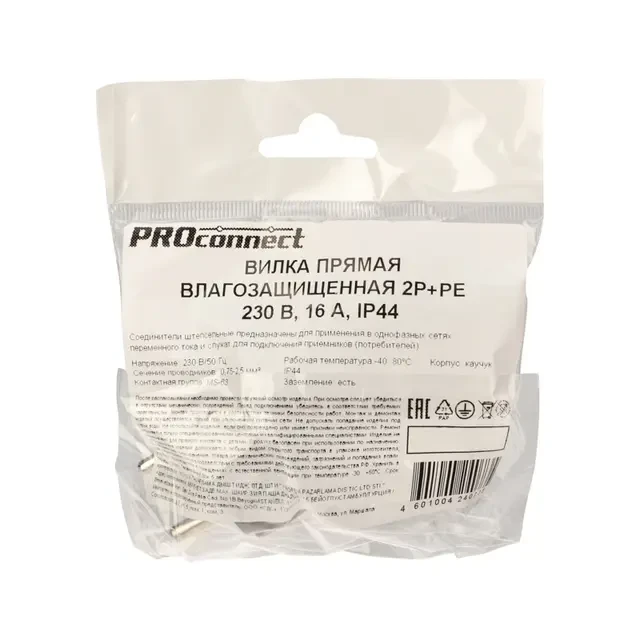 Описание PROconnect 111-001-4 - Купить Вилка влагозащищенная прямая 2P+PE